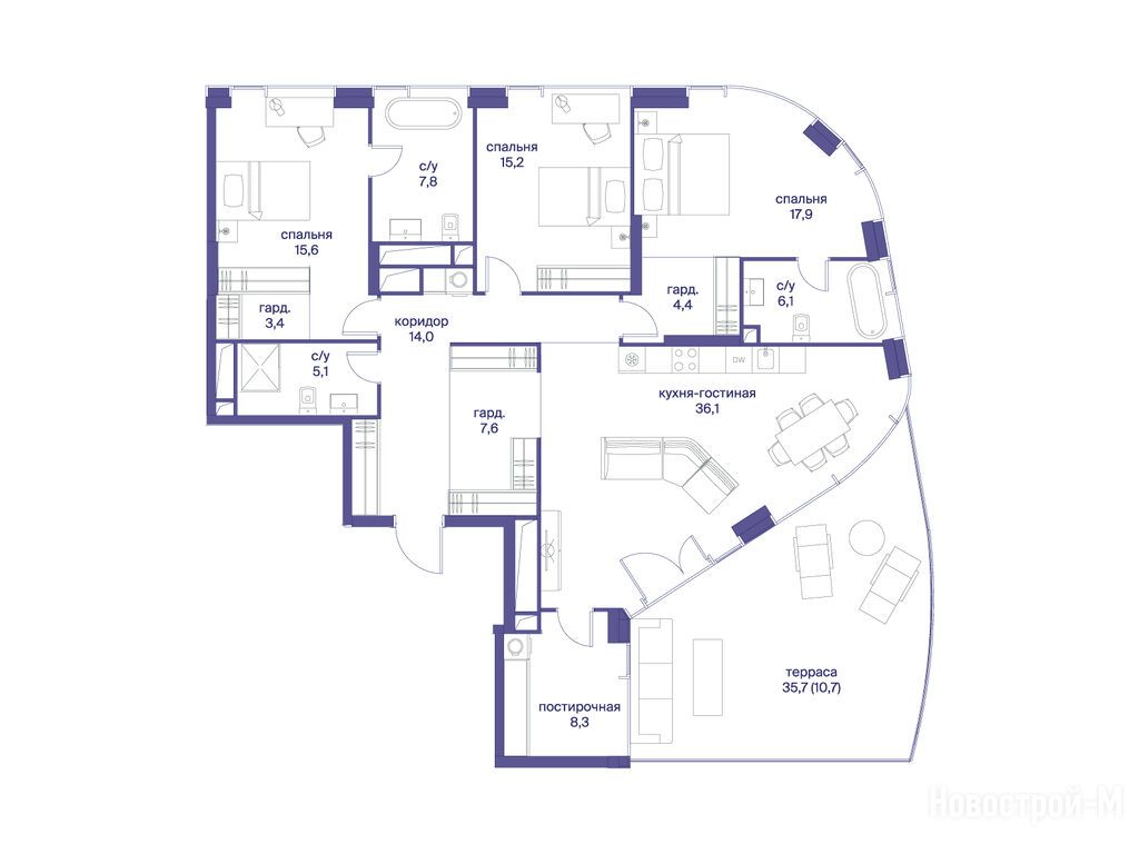 Продается трехкомнатная квартира в новостройке ЖК «Начало» по адресу Москва, ЦАО, Пресненский, ул. Сергея Макеева, вл. 7, корп. 3. Общая площадь квартиры - 152.2 кв. м. Тип проекта, по которому построен дом — Монолитно-кирпичный, компания-застройщик — Донстрой. Стоимость квартиры — 186 292 800 руб. Способы оплаты можно уточнить у продавца. Срок сдачи — 2 квартал 2029. Более подробная информация по телефону.