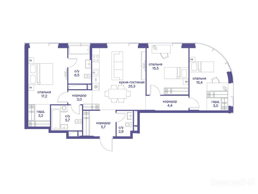 Продается трехкомнатная квартира в новостройке ЖК «Начало» по адресу Москва, ЦАО, Пресненский, ул. Сергея Макеева, вл. 7, корп. 4. Общая площадь квартиры - 107.8 кв. м. Тип проекта, по которому построен дом — Монолитно-кирпичный, компания-застройщик — Донстрой. Стоимость квартиры — 126 988 400 руб. Способы оплаты можно уточнить у продавца. Срок сдачи — 2 квартал 2029. Более подробная информация по телефону.