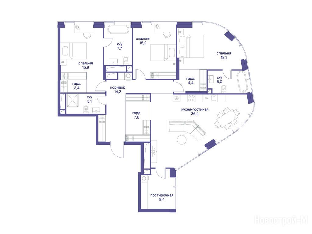 Продается трехкомнатная квартира в новостройке ЖК «Начало» по адресу Москва, ЦАО, Пресненский, ул. Сергея Макеева, вл. 7, корп. 3. Общая площадь квартиры - 142.4 кв. м. Тип проекта, по которому построен дом — Монолитно-кирпичный, компания-застройщик — Донстрой. Стоимость квартиры — 175 721 600 руб. Способы оплаты можно уточнить у продавца. Срок сдачи — 2 квартал 2029. Более подробная информация по телефону.