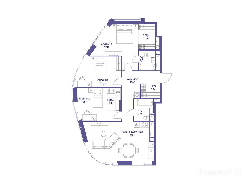 Продается трехкомнатная квартира в новостройке ЖК «Начало» по адресу Москва, ЦАО, Пресненский, ул. Сергея Макеева, вл. 7, корп. 3. Общая площадь квартиры - 108.5 кв. м. Тип проекта, по которому построен дом — Монолитно-кирпичный, компания-застройщик — Донстрой. Стоимость квартиры — 149 838 500 руб. Способы оплаты можно уточнить у продавца. Срок сдачи — 2 квартал 2029. Более подробная информация по телефону.