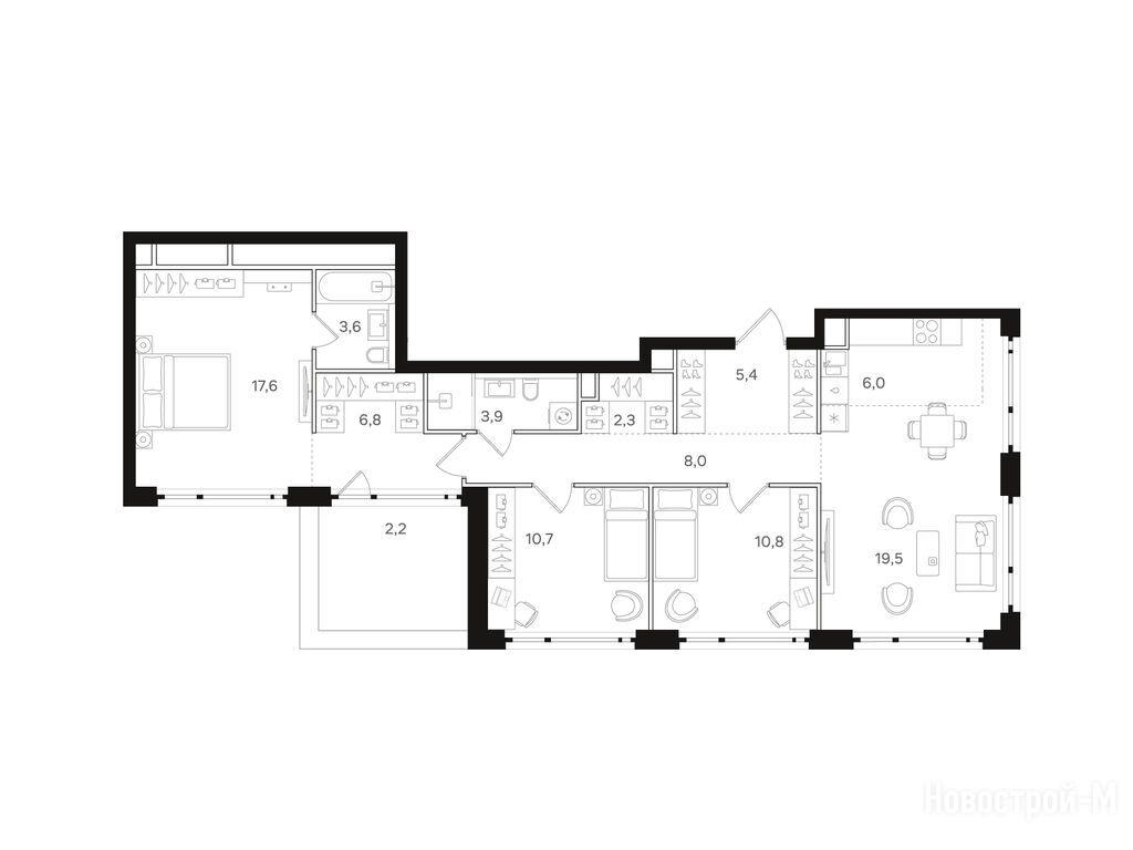 Трешки супер, есть окно в гардеробной, мастер-спальня удалена максимально от всех комнат, кухня-гостиная большая, можно зонировать спокойно. Смутил только длинный коридор-труба на 8 квадратов, пока не очень представляю как это будет выглядеть на деле.