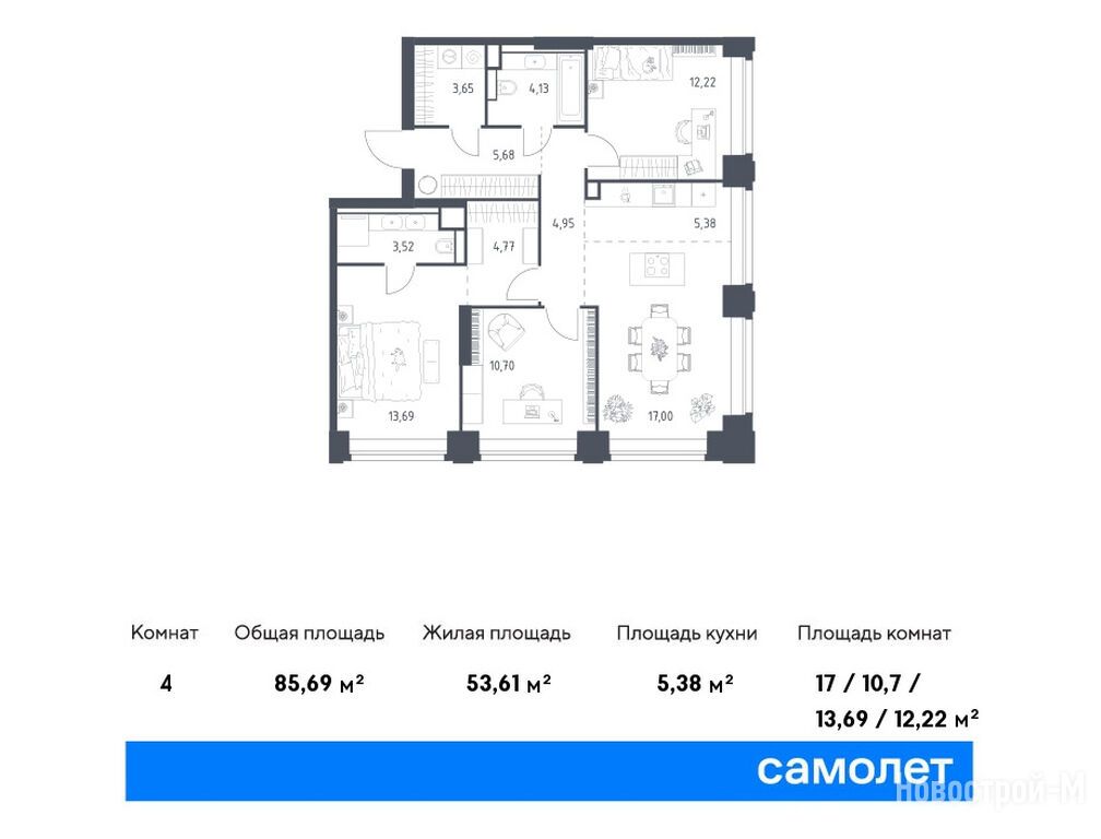 Продается трехкомнатная квартира в новостройке ЖК NOVA (Нова) по адресу Москва, ЗАО, Раменки, ул. Братьев Фонченко, вл. 19. Общая площадь квартиры - 85.69 кв. м. Тип проекта, по которому построен дом — Монолитно-кирпичный, компания-застройщик — Группа «Самолет», ООО СЗ «Сетунь АЛГ». Стоимость квартиры — 80 807 727 руб. Способы оплаты можно уточнить у продавца. Срок сдачи — 2 квартал 2029. Более подробная информация по телефону.