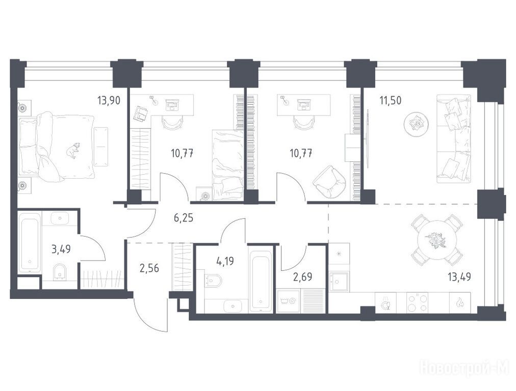 Продается трехкомнатная квартира в новостройке ЖК NOVA (Нова) по адресу Москва, ЗАО, Раменки, ул. Братьев Фонченко, вл. 19. Общая площадь квартиры - 79.61 кв. м. Тип проекта, по которому построен дом — Монолитно-кирпичный, компания-застройщик — Группа «Самолет», ООО СЗ «Сетунь АЛГ». Стоимость квартиры — 82 504 858 руб. Способы оплаты можно уточнить у продавца. Срок сдачи — 2 квартал 2029. Более подробная информация по телефону.