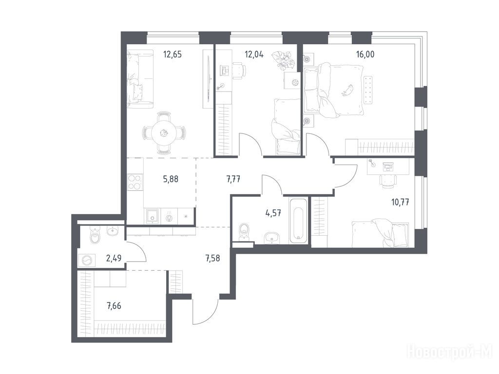 Продается трехкомнатная квартира в новостройке ЖК «Новое Видное» по адресу Московская область, Ленинский городской округ, Горки Ленинские Г/П, ЖК «Новое Видное», корп. 14.1. Общая площадь квартиры - 87.41 кв. м. Тип проекта, по которому построен дом — Монолитно-кирпичный, компания-застройщик — ООО СЗ «Самолет-Калиновка», Группа «Самолет». Стоимость квартиры — 14 015 669 руб. Способы оплаты можно уточнить у продавца. Срок сдачи — 4 квартал 2026. Более подробная информация по телефону.