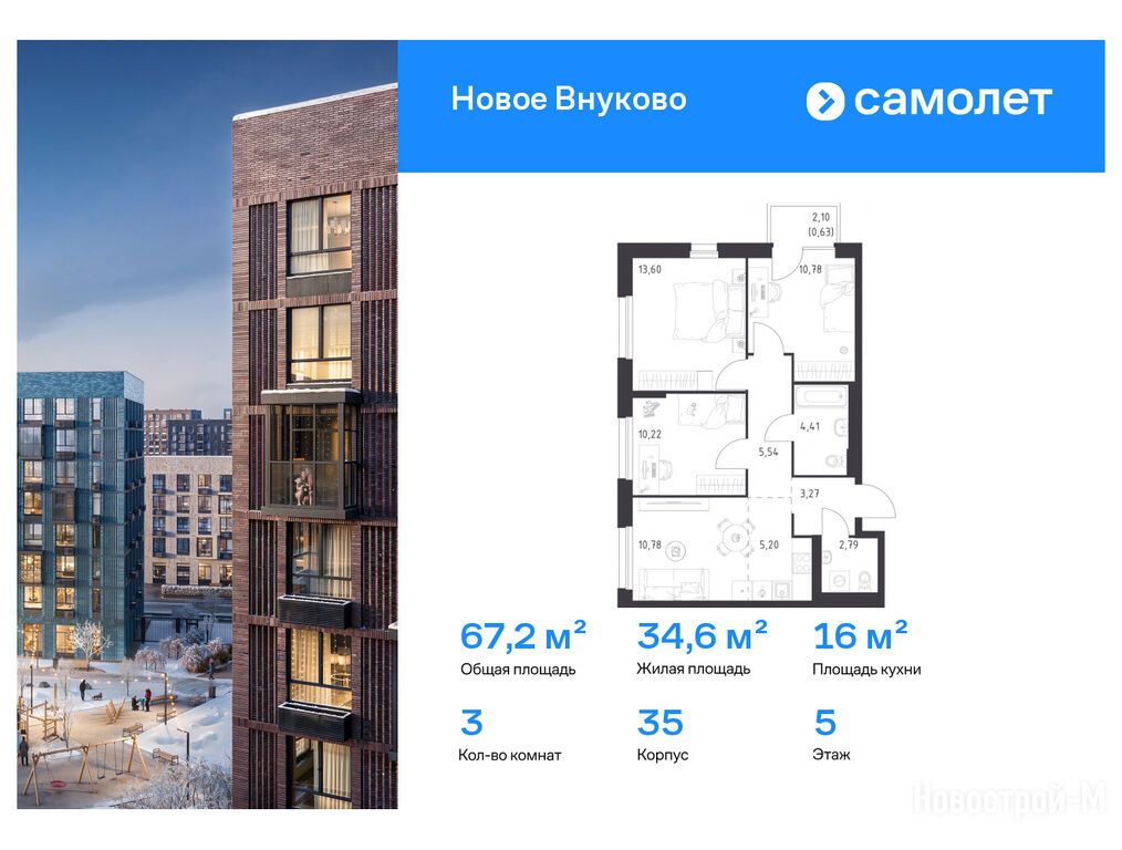 Продается трехкомнатная квартира в новостройке ЖК «Новое Внуково» по адресу Москва, ТиНАО, Новомосковский АО, Кокошкино С/П, Кокошкино пос., д. Санино, корп. 35. Общая площадь квартиры - 67.22 кв. м. Тип проекта, по которому построен дом — Монолитно-кирпичный, компания-застройщик — ООО СЗ «Санино 1», Группа «Самолет». Стоимость квартиры — 15 492 395 руб. Способы оплаты можно уточнить у продавца. Срок сдачи — 4 квартал 2027. Более подробная информация по телефону.