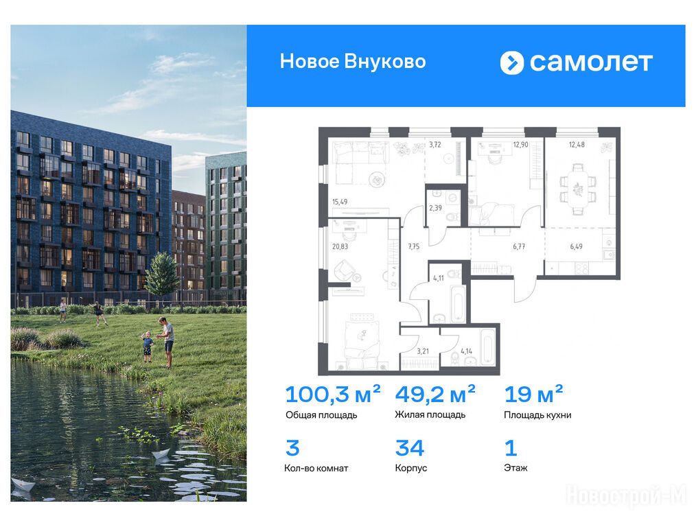Продается трехкомнатная квартира в новостройке ЖК «Новое Внуково» по адресу Москва, ТиНАО, Новомосковский АО, Кокошкино С/П, Кокошкино пос., д. Санино, корп. 34. Общая площадь квартиры - 100.28 кв. м. Тип проекта, по которому построен дом — Монолитно-кирпичный, компания-застройщик — ООО СЗ «Санино 1», Группа «Самолет». Стоимость квартиры — 25 770 602 руб. Способы оплаты можно уточнить у продавца. Срок сдачи — 4 квартал 2027. Более подробная информация по телефону.