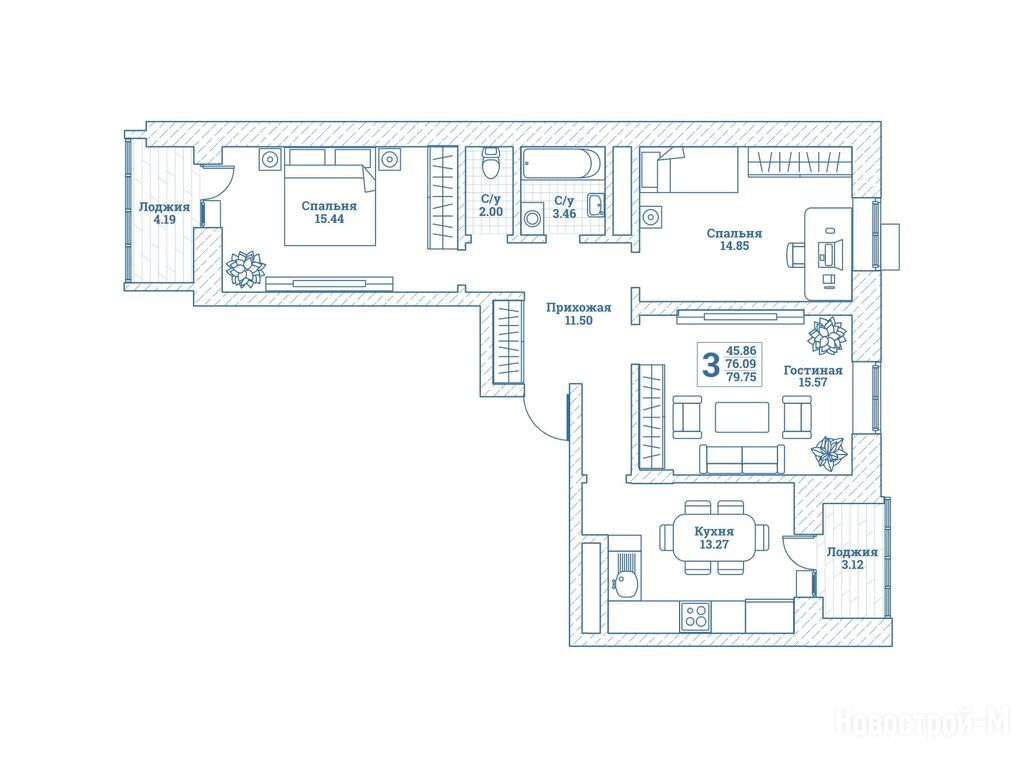 Продается трехкомнатная квартира в новостройке ЖК «Новоград Монино» по адресу Московская область, Щелковский район, Монино Г/П, ул. Нижегородская, корп. 6. Общая площадь квартиры - 79.9 кв. м. Тип проекта, по которому построен дом — Монолитно-кирпичный, компания-застройщик — СПЕЦИАЛИЗИРОВАННЫЙ ЗАСТРОЙЩИК «АВЕРУС». Стоимость квартиры — 11 505 600 руб. Способы оплаты можно уточнить у продавца. Более подробная информация по телефону.