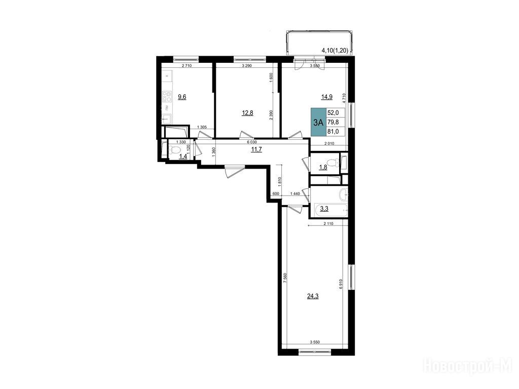 Данная квартира является лидером продаж среди трехкомнатных квартир в ЖК «Одинцово сити» по данным Росреестра