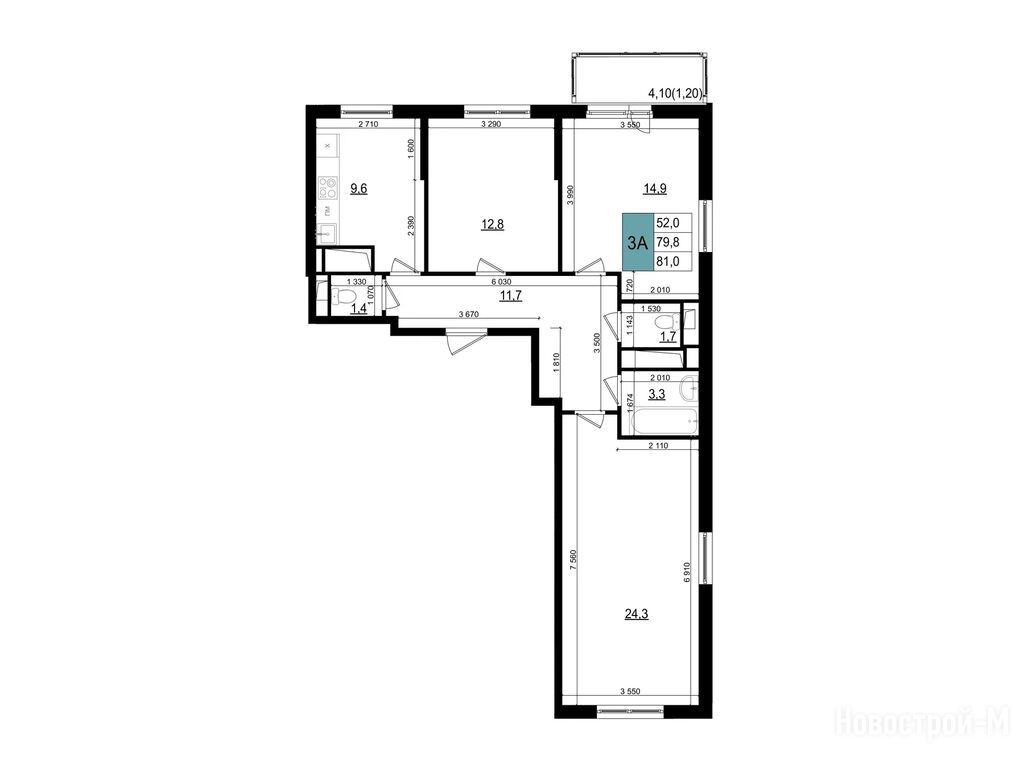 Данная квартира является лидером продаж среди трехкомнатных квартир в ЖК «Одинцово сити» по данным Росреестра