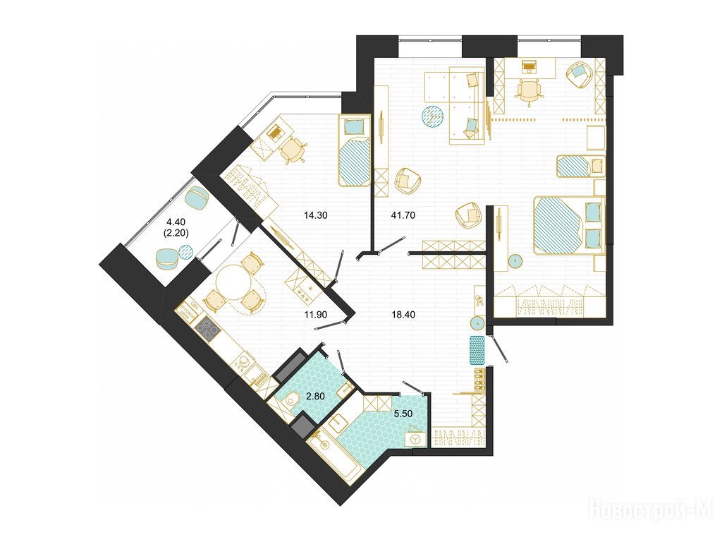 1-комн. квартира 41,10 м2 6 165 000