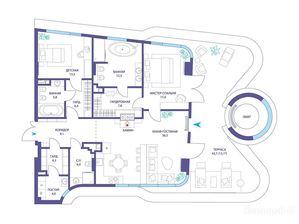 Из плюсов могу выделить высокие потолки от 3,20 метров, умный дом уже входит, видовые террасы. Контингент приличный. То есть тут покупаешь даже не столько недвижку, сколько вклад в будущее своих детей с приличным окружением. Человек красит место, как говорится.