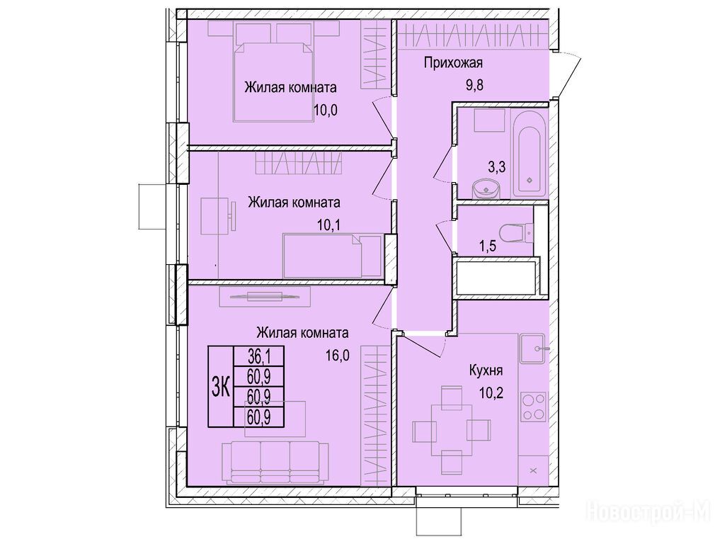 Продается трехкомнатная квартира в новостройке ЖК «Отрадный» по адресу Московская область, Мытищи городской округ, Мытищи, ул. Академика Каргина, 1-й Щёлковский пр-д, Олимпийский пр-т. Общая площадь квартиры - 60.9 кв. м. Тип проекта, по которому построен дом — Монолитно-кирпичный, компания-застройщик — Инвест-Строй. Стоимость квартиры — 12 789 000 руб. Способы оплаты можно уточнить у продавца. Срок сдачи — 4 квартал 2026. Более подробная информация по телефону.