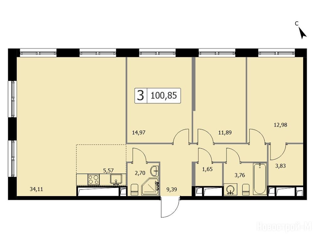 Продается трехкомнатная квартира в новостройке ЖК Парковый квартал Self (Селф) по адресу Москва, ВАО, Богородское, 3-я Гражданская ул., вл. 21. Общая площадь квартиры - 100.5 кв. м. Тип проекта, по которому построен дом — Монолитно-кирпичный, компания-застройщик — ООО СЗ «Энергостройинвест». Стоимость квартиры — 36 214 689 руб. Способы оплаты можно уточнить у продавца. Более подробная информация по телефону.