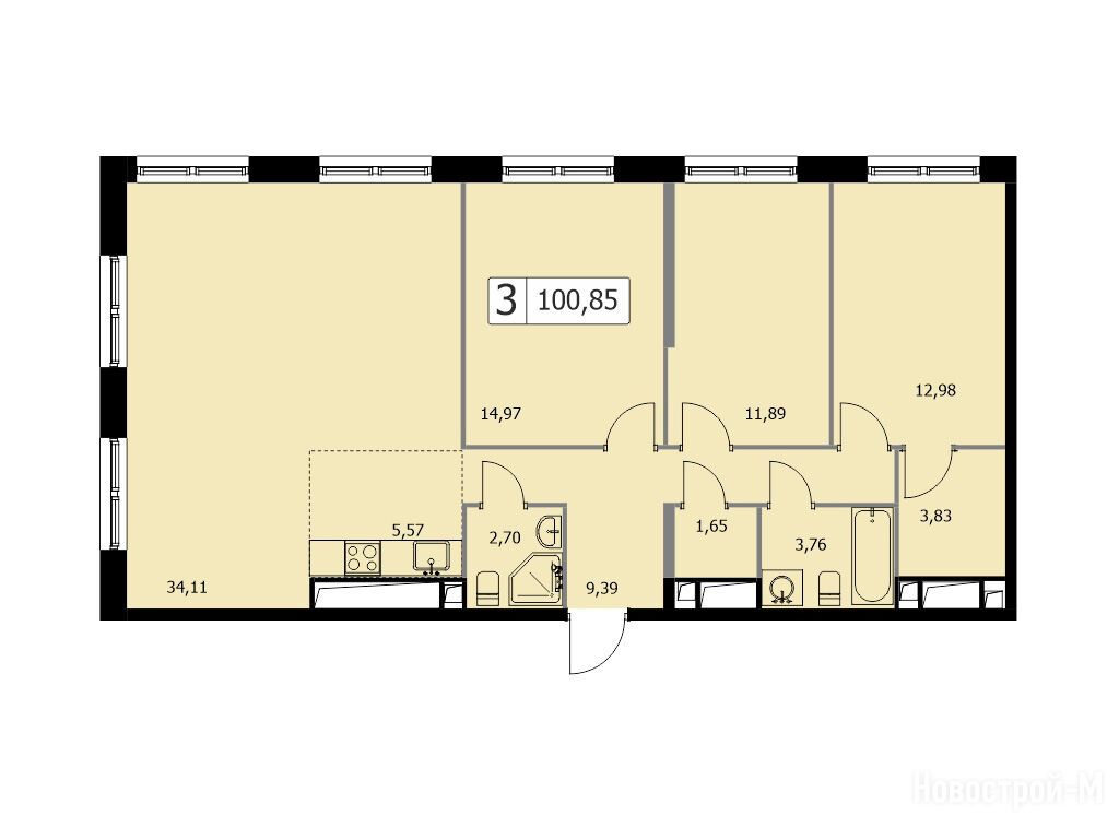 Продается трехкомнатная квартира в новостройке ЖК Парковый квартал Self (Селф) по адресу Москва, ВАО, Богородское, 3-я Гражданская ул., вл. 21. Общая площадь квартиры - 100.85 кв. м. Тип проекта, по которому построен дом — Монолитно-кирпичный, компания-застройщик — ООО СЗ «Энергостройинвест». Стоимость квартиры — 35 819 714 руб. Способы оплаты можно уточнить у продавца. Более подробная информация по телефону.
