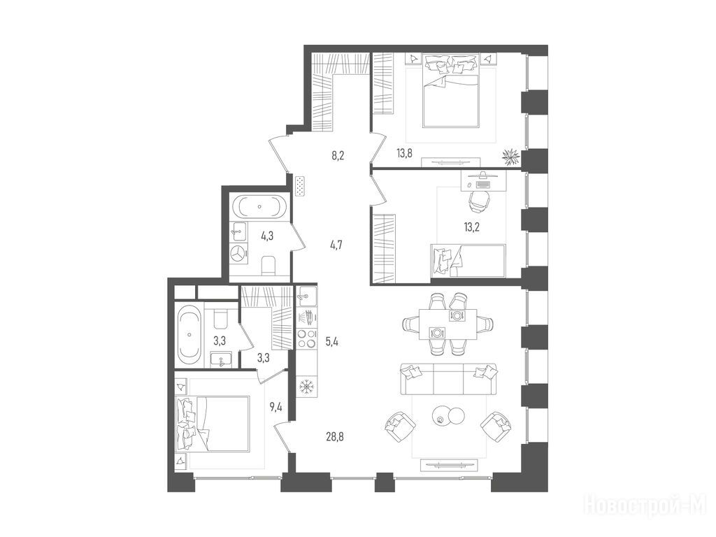 Продается трехкомнатная квартира в новостройке ЖК «Пейв» по адресу Москва, ЮАО, Даниловский, 2-й Павелецкий пр-д, вл. 4/6, корп. 1. Общая площадь квартиры - 94.4 кв. м. Тип проекта, по которому построен дом — Монолит, компания-застройщик — FORMA (Форма). Стоимость квартиры — 59 320 960 руб. Способы оплаты можно уточнить у продавца. Срок сдачи — 4 квартал 2028. Более подробная информация по телефону.