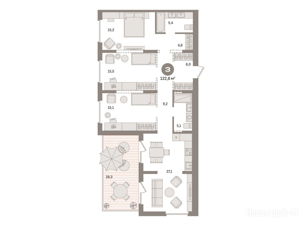 Продается трехкомнатная квартира в новостройке ЖК «Первый квартал» по адресу Московская область, Ленинский городской округ, Горки Ленинские Г/П, Сапроново деревня, ул. Калиновая, корп. 12. Общая площадь квартиры - 122.8 кв. м. Тип проекта, по которому построен дом — Монолитно-кирпичный, компания-застройщик — Брусника, Третий квартал, ООО Брусника. Стоимость квартиры — 18 700 000 руб. Способы оплаты можно уточнить у продавца. Срок сдачи — 4 квартал 2027. Более подробная информация по телефону.