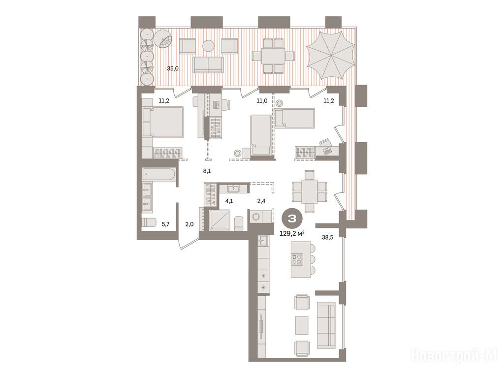 Продается трехкомнатная квартира в новостройке ЖК «Первый квартал» по адресу Московская область, Ленинский городской округ, Горки Ленинские Г/П, Сапроново деревня, ул. Калиновая, корп. 11. Общая площадь квартиры - 129.2 кв. м. Тип проекта, по которому построен дом — Монолитно-кирпичный, компания-застройщик — Брусника, Третий квартал, ООО Брусника. Стоимость квартиры — 20 370 000 руб. Способы оплаты можно уточнить у продавца. Срок сдачи — 4 квартал 2027. Более подробная информация по телефону.