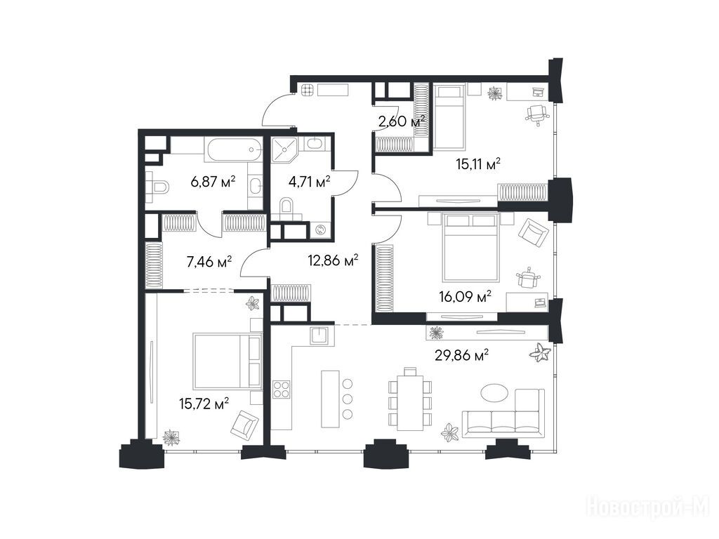 Продается трехкомнатная квартира в новостройке ЖК «Первый Нагатинский» по адресу Москва, ЮАО, Нагатино-Садовники, Нагатинская, д. 1. Общая площадь квартиры - 111.28 кв. м. Тип проекта, по которому построен дом — Монолитно-кирпичный, компания-застройщик — ПРАЙМ ЛАЙФ, СЗ Альфа. Стоимость квартиры — 67 628 757 руб. Способы оплаты можно уточнить у продавца. Срок сдачи — 2 квартал 2026. Более подробная информация по телефону.