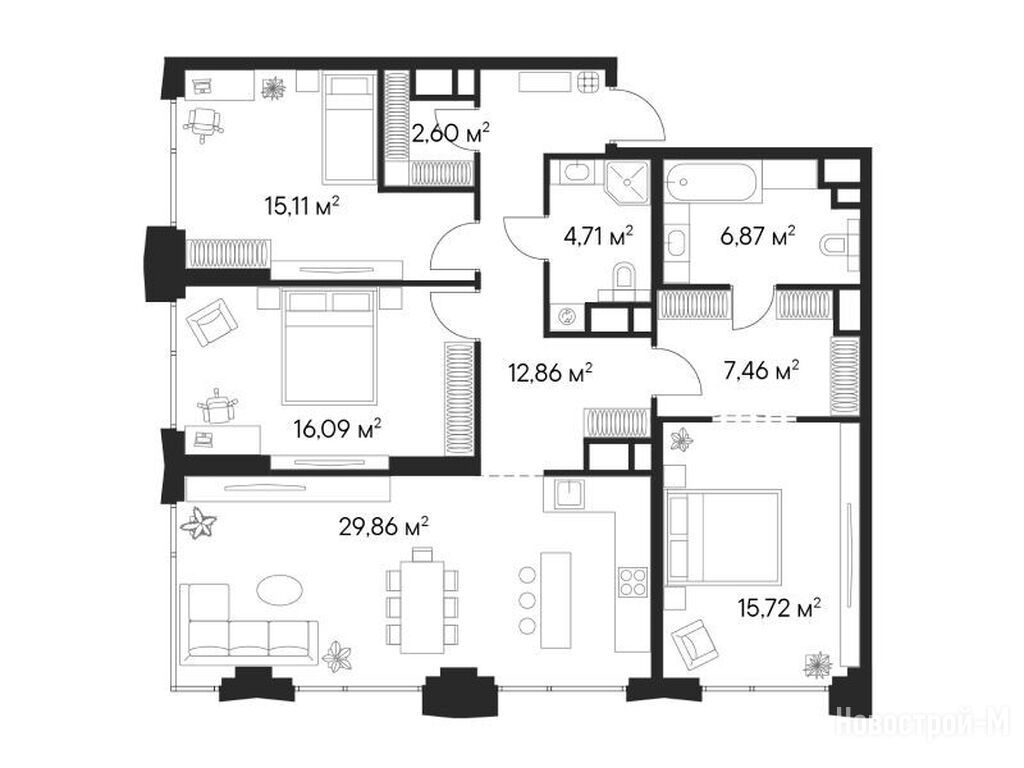 Продается трехкомнатная квартира в новостройке ЖК «Первый Нагатинский» по адресу Москва, ЮАО, Нагатино-Садовники, Нагатинская, д. 1. Общая площадь квартиры - 111.28 кв. м. Тип проекта, по которому построен дом — Монолитно-кирпичный, компания-застройщик — ПРАЙМ ЛАЙФ, СЗ Альфа. Стоимость квартиры — 74 196 309 руб. Способы оплаты можно уточнить у продавца. Срок сдачи — 2 квартал 2026. Более подробная информация по телефону.