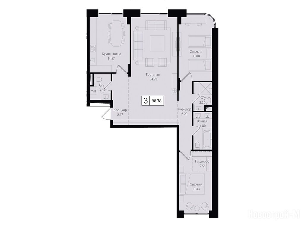 Продается трехкомнатная квартира в новостройке ЖК «Преображенская площадь» по адресу Москва, ВАО, Преображенское, ул. 1-я Бухвостова, д. 12/11, корп. 2. Общая площадь квартиры - 98.8 кв. м. Тип проекта, по которому построен дом — Монолитно-кирпичный, компания-застройщик — Regions Development. Стоимость квартиры — 44 811 713 руб. Способы оплаты можно уточнить у продавца. Более подробная информация по телефону.