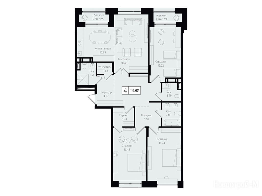 Продается трехкомнатная квартира в новостройке ЖК «Преображенская площадь» по адресу Москва, ВАО, Преображенское, ул. 1-я Бухвостова, д. 12/11, корп. 1. Общая площадь квартиры - 119.8 кв. м. Тип проекта, по которому построен дом — Монолитно-кирпичный, компания-застройщик — Regions Development. Стоимость квартиры — 82 028 816 руб. Способы оплаты можно уточнить у продавца. Более подробная информация по телефону.
