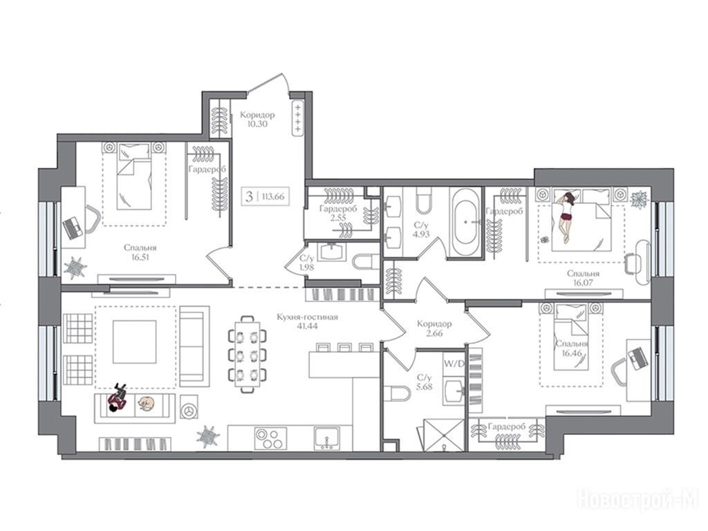 Продается трехкомнатная квартира в новостройке ЖК «Преображенская площадь» по адресу Москва, ВАО, Преображенское, ул. 1-я Бухвостова, вл.12/11. Общая площадь квартиры - 113.66 кв. м. Тип проекта, по которому построен дом — Монолитно-кирпичный, компания-застройщик — Regions Development. Стоимость квартиры — 51 702 824 руб. Способы оплаты можно уточнить у продавца. Срок сдачи — 2 квартал 2027. Более подробная информация по телефону.