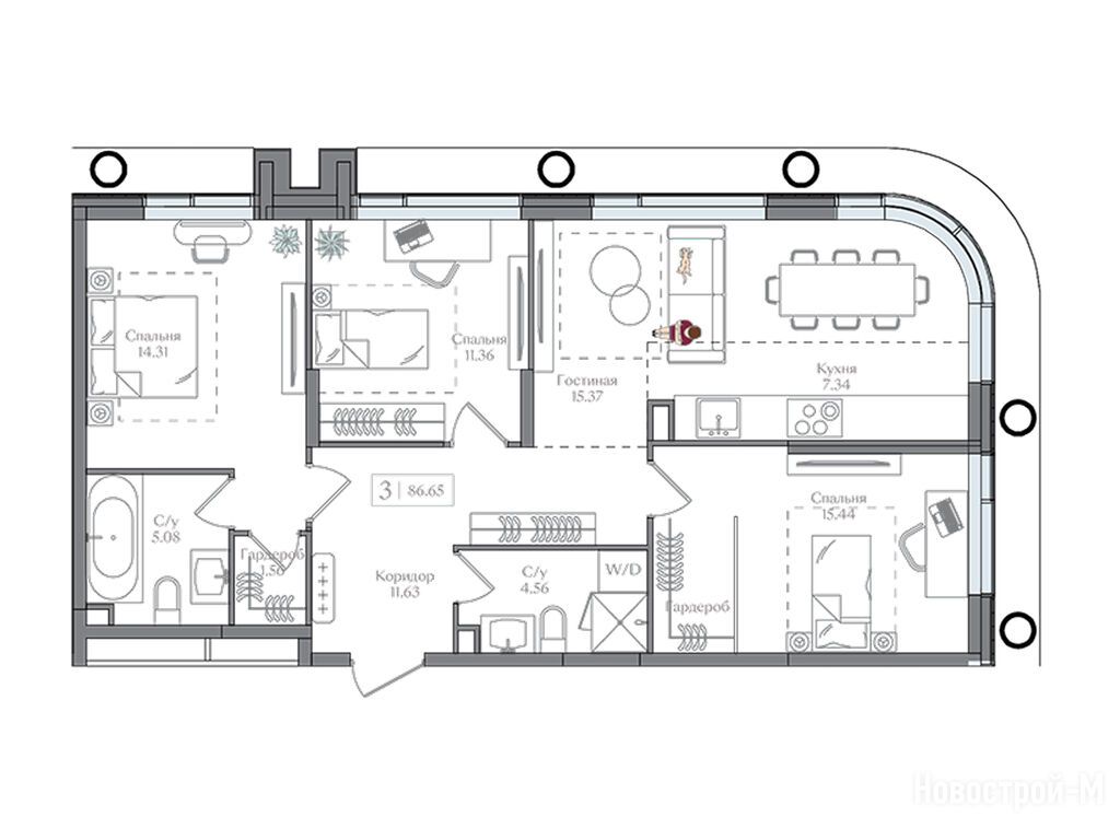 Продается трехкомнатная квартира в новостройке ЖК «Преображенская площадь» по адресу Москва, ВАО, Преображенское, ул. 1-я Бухвостова, вл.12/11. Общая площадь квартиры - 86.65 кв. м. Тип проекта, по которому построен дом — Монолитно-кирпичный, компания-застройщик — Regions Development. Стоимость квартиры — 43 714 376 руб. Способы оплаты можно уточнить у продавца. Срок сдачи — 2 квартал 2027. Более подробная информация по телефону.