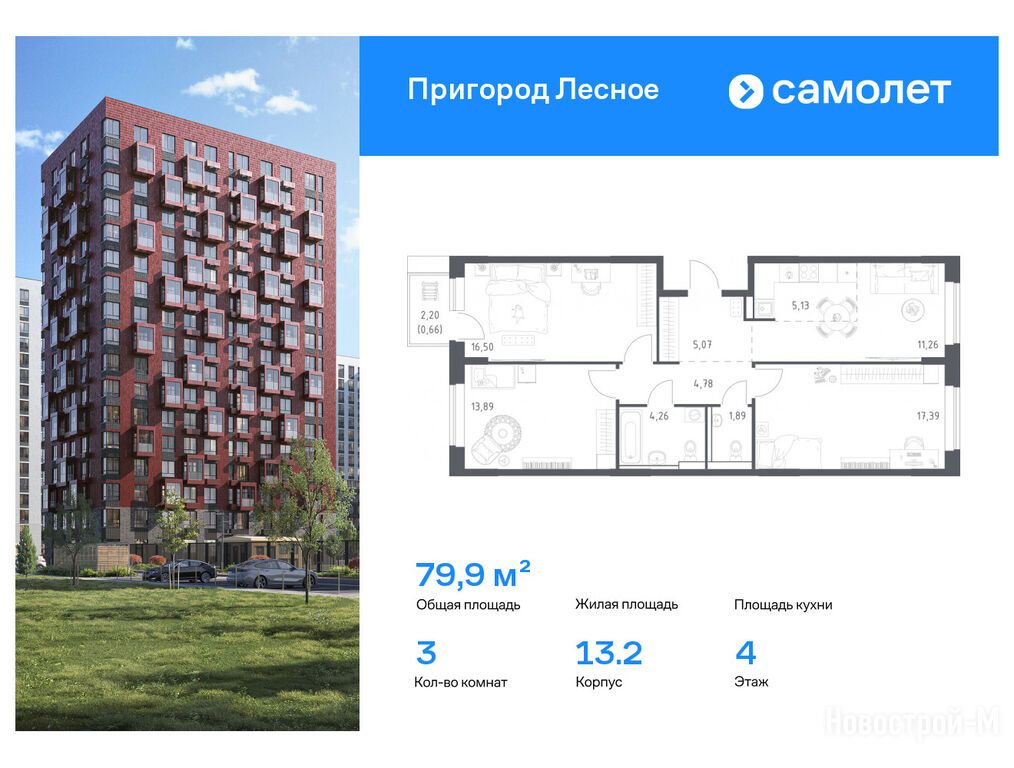 Продается трехкомнатная квартира в новостройке ЖК «Пригород Лесное» по адресу Московская область, Ленинский городской округ, Молоковское С/П, Мисайлово деревня, д. Мисайлово, корпус 13.2. Общая площадь квартиры - 79.9 кв. м. Тип проекта, по которому построен дом — Монолитно-кирпичный, компания-застройщик — ООО «СЗ «Пригород Лесное», Группа «Самолет». Стоимость квартиры — 20 951 518 руб. Способы оплаты можно уточнить у продавца. Более подробная информация по телефону.