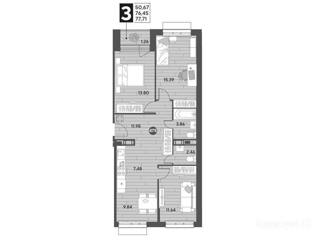 Продается трехкомнатная квартира в новостройке ЖК «Публицист» по адресу Московская область, Пушкинский район, Пушкино, ул. Зеленая Роща, корп. 12. Общая площадь квартиры - 77.71 кв. м. Тип проекта, по которому построен дом — Монолитно-кирпичный, компания-застройщик — DOGMA, ООО СЗ Ниго-Холдинг. Стоимость квартиры — 14 151 924 руб. Способы оплаты можно уточнить у продавца. Срок сдачи — 3 квартал 2026. Более подробная информация по телефону.