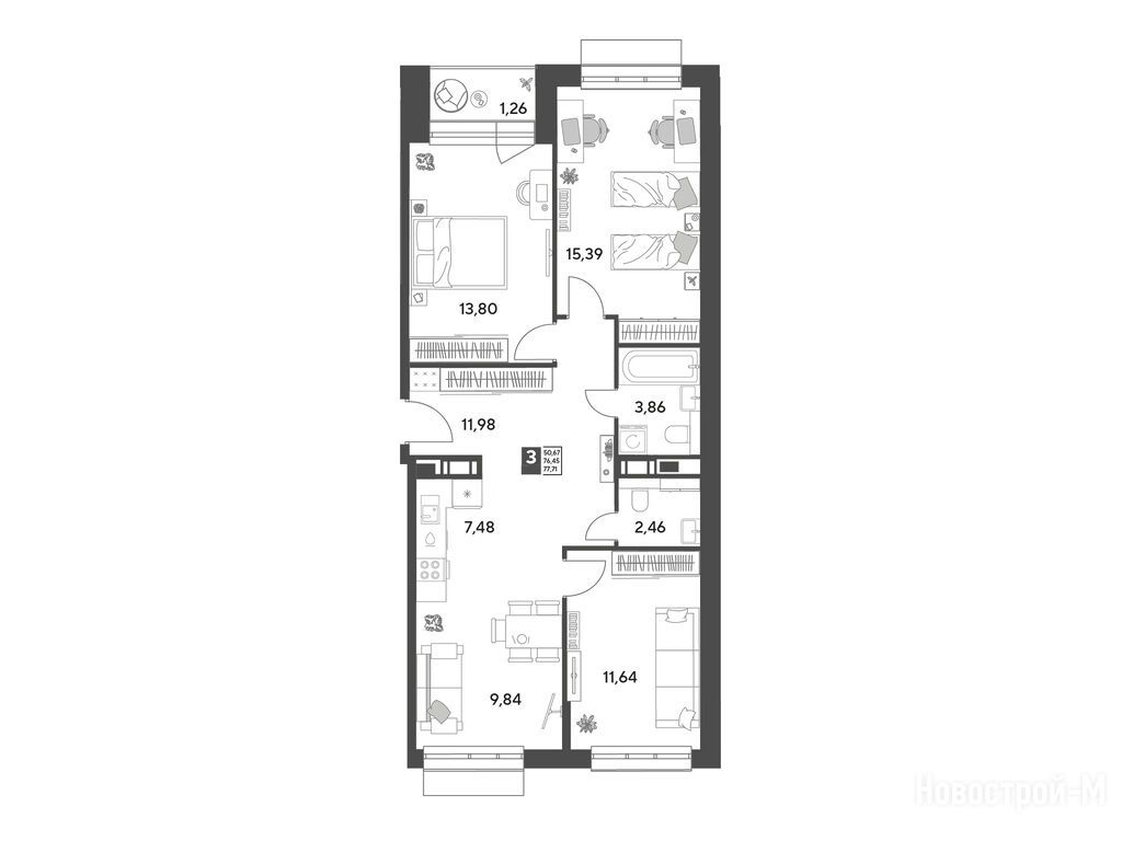 Продается трехкомнатная квартира в новостройке ЖК «Публицист» по адресу Московская область, Пушкинский район, Пушкино, ул. Зеленая Роща, корп. 12. Общая площадь квартиры - 77.71 кв. м. Тип проекта, по которому построен дом — Монолитно-кирпичный, компания-застройщик — DOGMA, ООО СЗ Ниго-Холдинг. Стоимость квартиры — 15 673 796 руб. Способы оплаты можно уточнить у продавца. Срок сдачи — 3 квартал 2026. Более подробная информация по телефону.