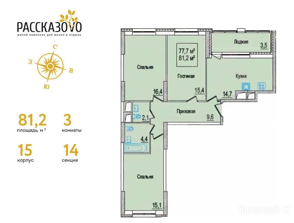 Продается трехкомнатная квартира в новостройке ЖК «Рассказово» по адресу Москва, ТиНАО, Новомосковский АО, Внуковское С/П, Рассказовка деревня, бульвар Андрея Тарковского, д. 10. Общая площадь квартиры - 81.5 кв. м. Тип проекта, по которому построен дом — Монолитно-кирпичный, компания-застройщик — Sezar Group (Сезар Групп). Стоимость квартиры — 28 525 000 руб. Способы оплаты можно уточнить у продавца. Более подробная информация по телефону.