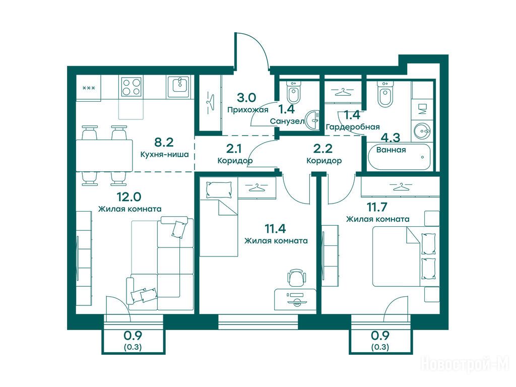 Данная квартира является лидером продаж среди трехкомнатных квартир в ЖК «Равновесие» по данным Росреестра