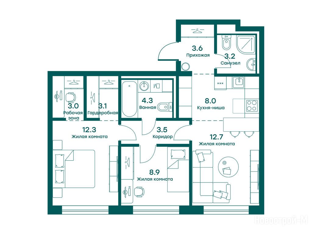 Продается трехкомнатная квартира в новостройке ЖК «Равновесие» по адресу Московская область, Одинцовский район, Перхушково с., село Перхушково, жилой комплекс Равновесие, корп. 2. Общая площадь квартиры - 62.6 кв. м. Тип проекта, по которому построен дом — Монолитно-кирпичный,Каркасно-блочный, компания-застройщик — Кортрос ГК. Стоимость квартиры — 14 538 161 руб. Способы оплаты можно уточнить у продавца. Срок сдачи — 3 квартал 2026. Более подробная информация по телефону.