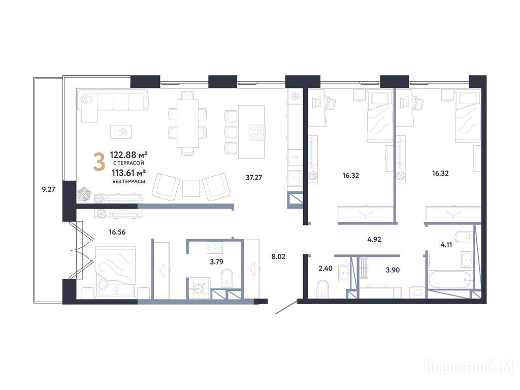 Продается трехкомнатная квартира в новостройке ЖК «Репаблик» по адресу Москва, ЦАО, Пресненский, ул. Пресненский вал, вл. 27, корп. 2.1, 2.2. Общая площадь квартиры - 122.88 кв. м. Тип проекта, по которому построен дом — Монолитно-каркасный, компания-застройщик — АО СЗ Пресненский Вал 27, Страна Девелопмент. Стоимость квартиры — 110 937 800 руб. Способы оплаты можно уточнить у продавца. Срок сдачи — 1 квартал 2026. Более подробная информация по телефону.