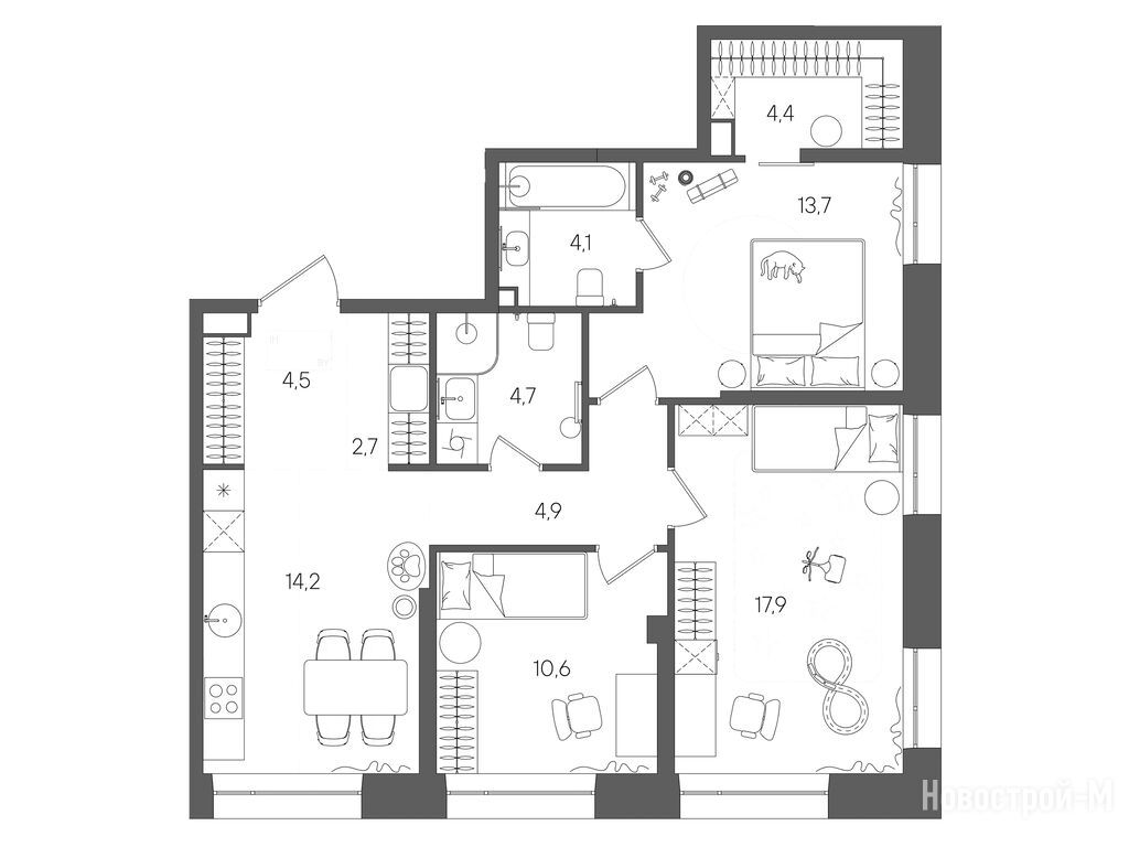 Продается трехкомнатная квартира в новостройке ЖК STONE Rise (Стоун Райс) по адресу Москва, ЮВАО, Лефортово, ул. Золоторожский вал, вл. 11, корп. А. Общая площадь квартиры - 81.7 кв. м. Тип проекта, по которому построен дом — Монолитно-кирпичный, компания-застройщик — АО «СЗ «Золоторожский 11», Stone. Стоимость квартиры — 42 358 591 руб. Способы оплаты можно уточнить у продавца. Срок сдачи — 4 квартал 2028. Более подробная информация по телефону.