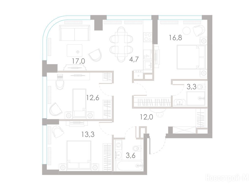 Продается трехкомнатная квартира в новостройке ЖК «River Park Кутузовский» по адресу Москва, ЗАО, Дорогомилово, Кутузовский проезд, владение 16А/1, корп. 3 (DIAMOND). Общая площадь квартиры - 83.3 кв. м. Тип проекта, по которому построен дом — Монолитно-кирпичный, компания-застройщик — АЕОН Девелопмент. Стоимость квартиры — 106 857 730 руб. Способы оплаты можно уточнить у продавца. Срок сдачи — 3 квартал 2027. Более подробная информация по телефону.