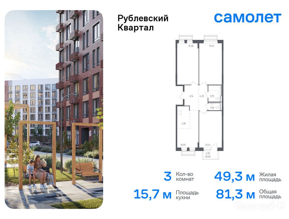 Продается трехкомнатная квартира в новостройке ЖК «Рублевский Квартал» по адресу Московская область, Одинцовский район, Горское С/П, Лайково с., ул. Строителей, корп. 55. Общая площадь квартиры - 81.31 кв. м. Тип проекта, по которому построен дом — Монолитно-кирпичный, компания-застройщик — ООО СЗ «Самолет-Лайково», Группа «Самолет». Стоимость квартиры — 14 545 139 руб. Способы оплаты можно уточнить у продавца. Срок сдачи — 1 квартал 2026. Более подробная информация по телефону.