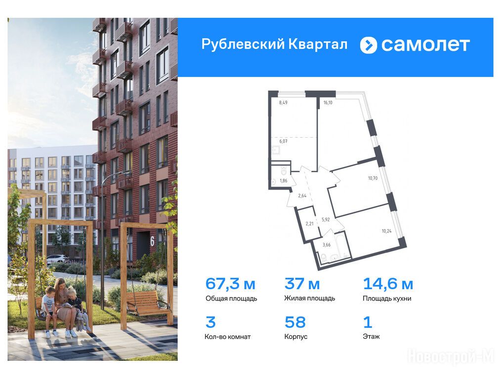 Продается трехкомнатная квартира в новостройке ЖК «Рублевский Квартал» по адресу Московская область, Одинцовский район, Горское С/П, Лайково с., ЖК «Рублевский Квартал», корп. 58. Общая площадь квартиры - 67.3 кв. м. Тип проекта, по которому построен дом — Монолитно-кирпичный, компания-застройщик — ООО СЗ «Самолет-Лайково», Группа «Самолет». Стоимость квартиры — 17 634 477 руб. Способы оплаты можно уточнить у продавца. Более подробная информация по телефону.