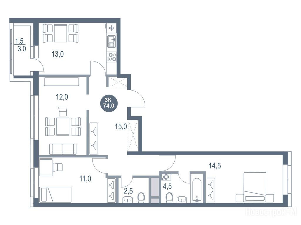 Продается трехкомнатная квартира в новостройке ЖК «Русич Котельники парк» по адресу Московская область, Дзержинский городской округ, Дзержинский, мкр. Новые Котельники, корп. 12. Общая площадь квартиры - 74 кв. м. Тип проекта, по которому построен дом — Монолит, компания-застройщик — ООО «СЗ «Новые Котельники», Концерн «Русич». Стоимость квартиры — 12 449 980 руб. Способы оплаты можно уточнить у продавца. Срок сдачи — 2 квартал 2026. Более подробная информация по телефону.