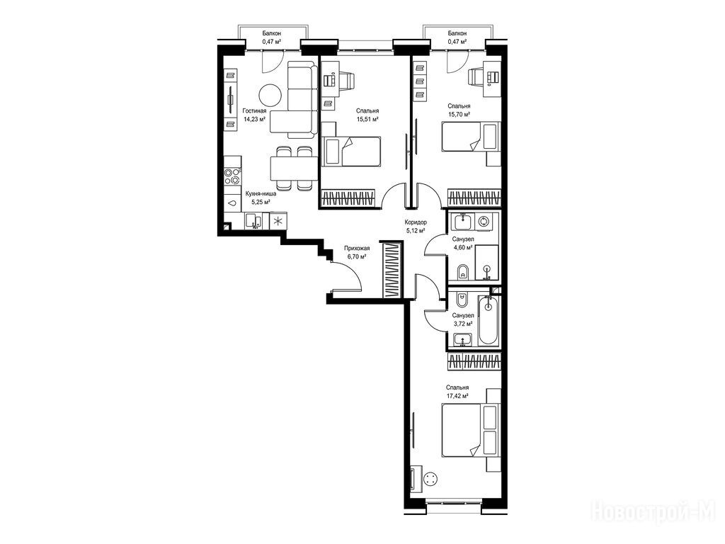 Выбрали квартиру в Селигере, так как хорошие планировки в жк, все комнаты правильной формы, никаких странных форм, от которых толку никакого, только площадь съедают, а тут 40 квадратов, или 60,так это полезная площадь