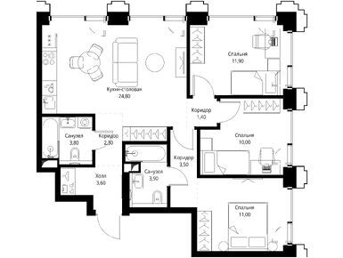 Продается трехкомнатная квартира в новостройке ЖК «СЕТ» по адресу Москва, ЗАО, Можайский, ул. Верейская, вл. 29, стр. 32Б. Общая площадь квартиры - 75.4 кв. м. Тип проекта, по которому построен дом — Монолитно-кирпичный, компания-застройщик — MR Group (МР Групп). Стоимость квартиры — 41 113 735 руб. Способы оплаты можно уточнить у продавца. Срок сдачи — 3 квартал 2028. Более подробная информация по телефону.
