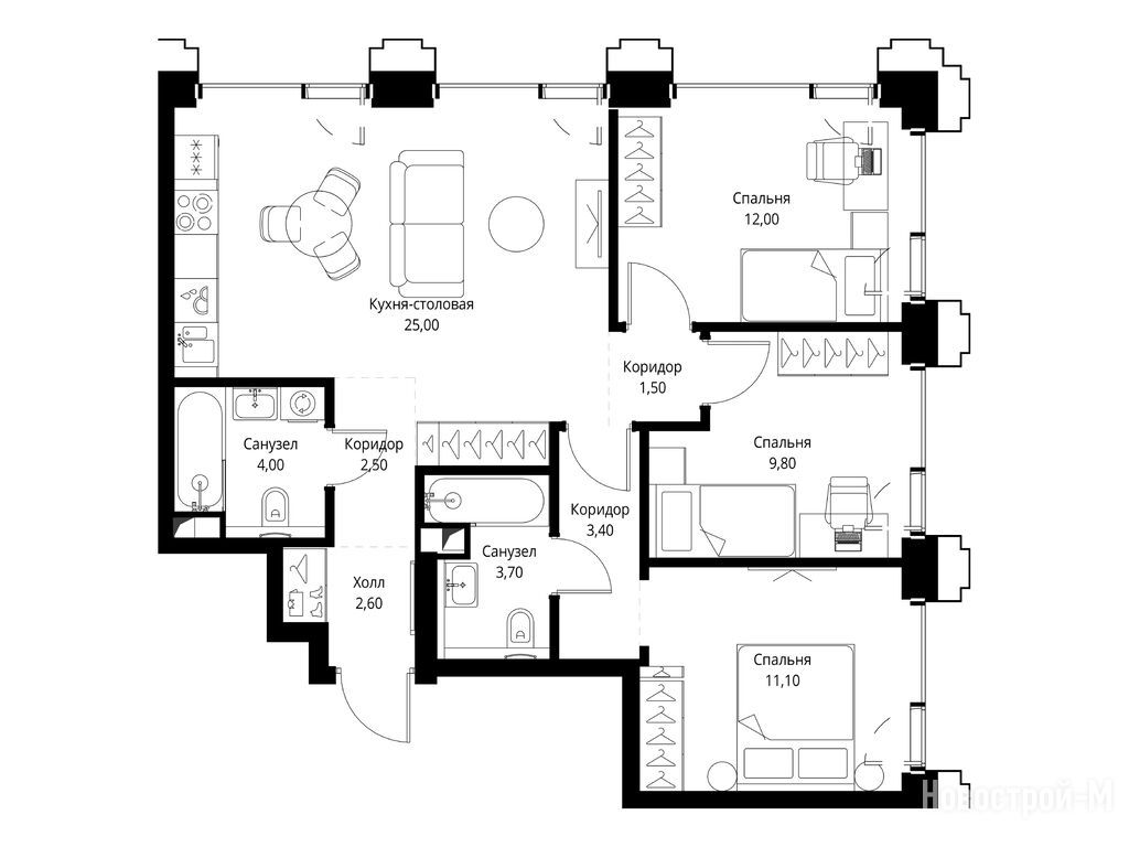 Жилой квартал состоит из трех корпусов, каждый из которых выполнен в своем стиле. Вроде как будут смотровые площадки, с которых панорама района предстанет как на ладони. Проектом предусмотрена своя инфраструктура - Фитнес-клуб с бассейном, детская школа искусств, школа и детский сад, центр культуры и досуга, медицинский центр, кафе и рестораны, мини-маркет