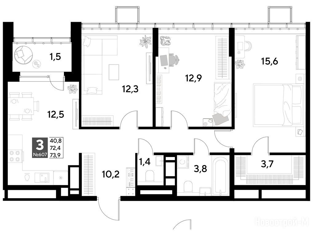 Продается трехкомнатная квартира в новостройке ЖК «Снегири» по адресу Омская область, Омск, ул. Светловская, корп. 1. Общая площадь квартиры - 73.9 кв. м. Тип проекта, по которому построен дом — Монолитно-кирпичный, компания-застройщик — DOGMA, ООО СЗ ДОГМА-ОМСК. Стоимость квартиры — 10 072 570 руб. Способы оплаты можно уточнить у продавца. Срок сдачи — 2 квартал 2027. Более подробная информация по телефону.