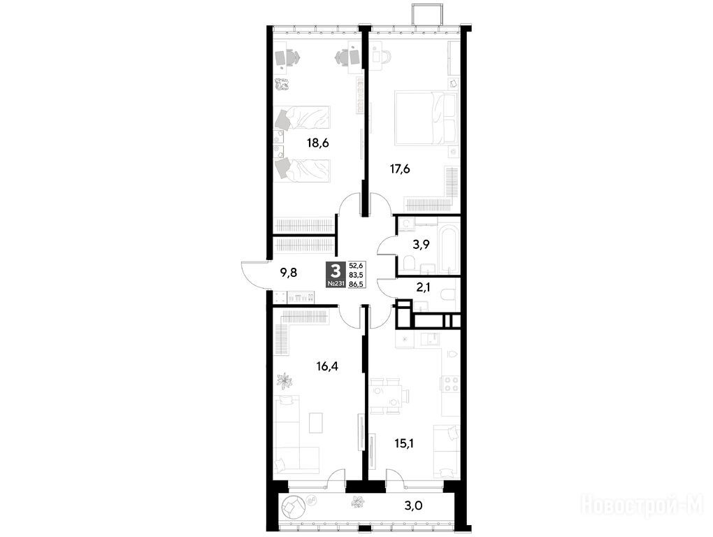 Продается трехкомнатная квартира в новостройке ЖК «Снегири» по адресу Омская область, Омск, ул. Светловская, корп. 1. Общая площадь квартиры - 86.5 кв. м. Тип проекта, по которому построен дом — Монолитно-кирпичный, компания-застройщик — DOGMA, ООО СЗ ДОГМА-ОМСК. Стоимость квартиры — 13 935 150 руб. Способы оплаты можно уточнить у продавца. Срок сдачи — 2 квартал 2027. Более подробная информация по телефону.