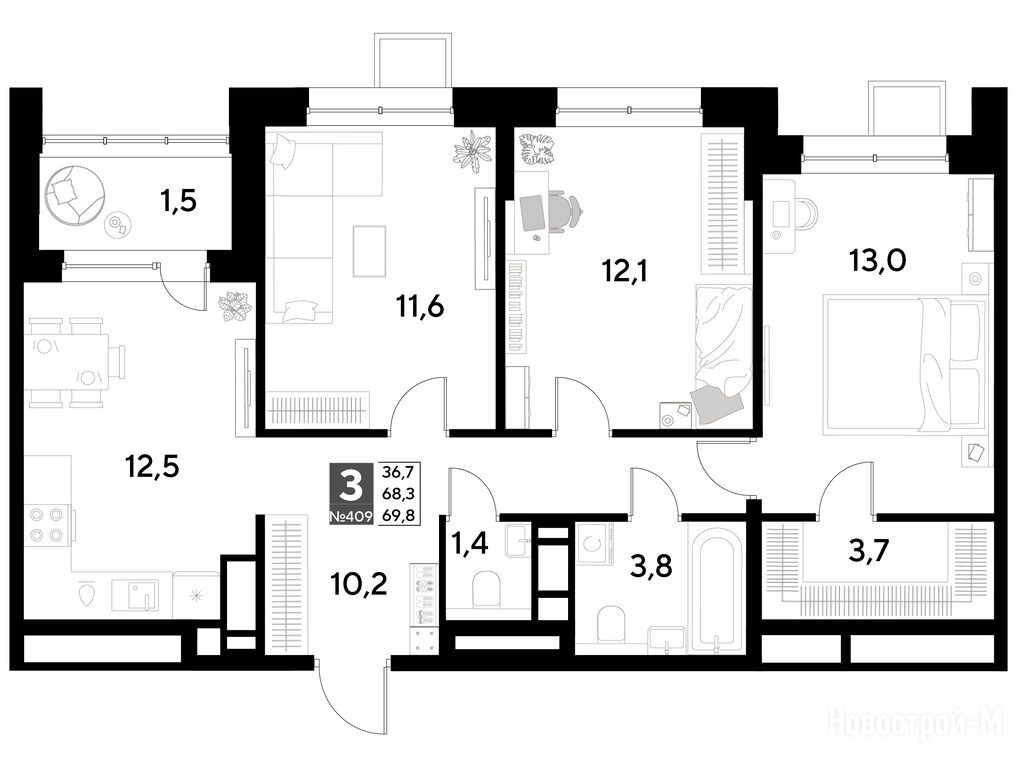 Продается трехкомнатная квартира в новостройке ЖК «Снегири» по адресу Омская область, Омск, ул. Светловская, корп. 1. Общая площадь квартиры - 69.8 кв. м. Тип проекта, по которому построен дом — Монолитно-кирпичный, компания-застройщик — DOGMA, ООО СЗ ДОГМА-ОМСК. Стоимость квартиры — 9 388 100 руб. Способы оплаты можно уточнить у продавца. Срок сдачи — 2 квартал 2027. Более подробная информация по телефону.