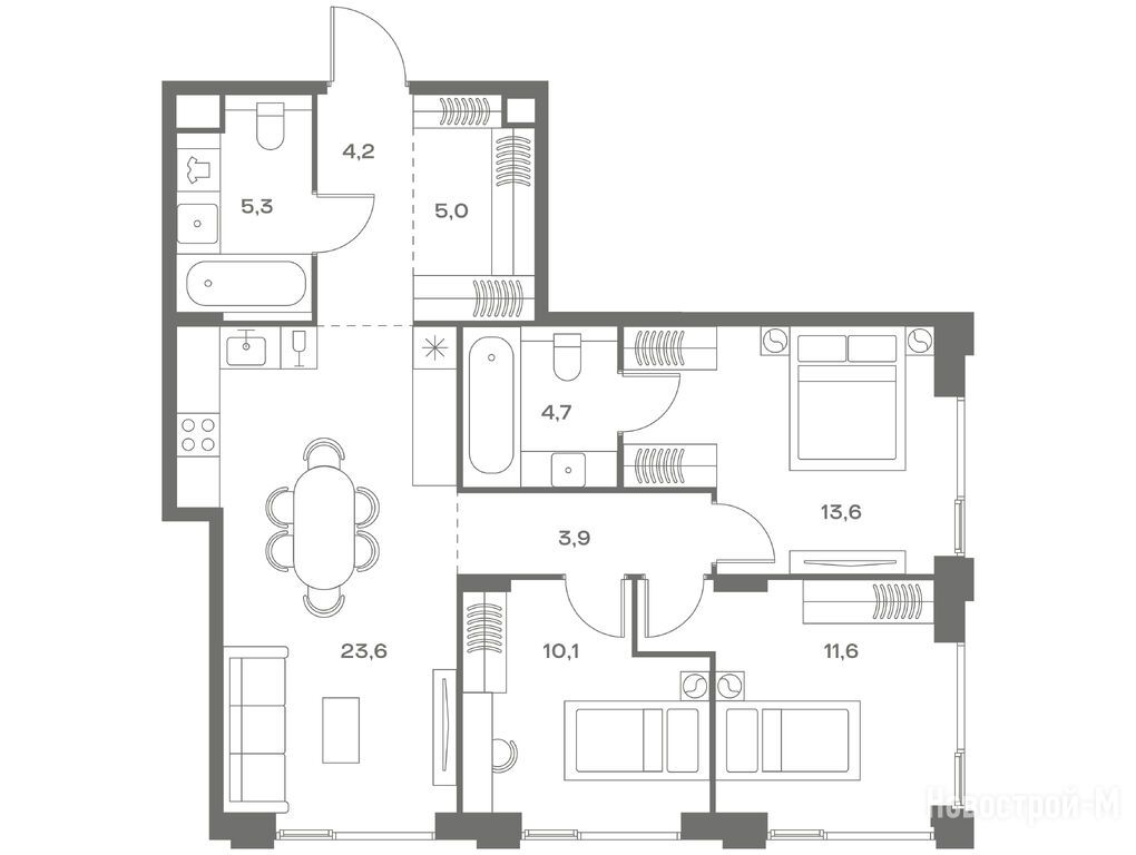 А планировки, так вообще. И два окна в спальне в пол, и кому это мало - окно в ванной комнате.