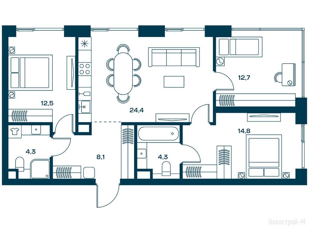 А планировки, так вообще. И два окна в спальне в пол, и кому это мало - окно в ванной комнате.