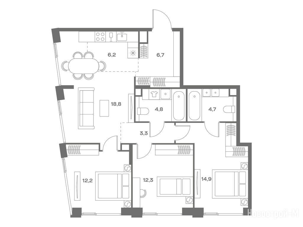 Продается трехкомнатная квартира в новостройке ЖК SOUL (Соул) по адресу Москва, САО, Аэропорт, ул. Часовая, вл. 28, корп. 9. Общая площадь квартиры - 83.9 кв. м. Тип проекта, по которому построен дом — Монолитно-кирпичный, компания-застройщик — FORMA (Форма), ООО СЗ Часовая. Стоимость квартиры — 50 893 740 руб. Способы оплаты можно уточнить у продавца. Срок сдачи — 1 квартал 2029. Более подробная информация по телефону.