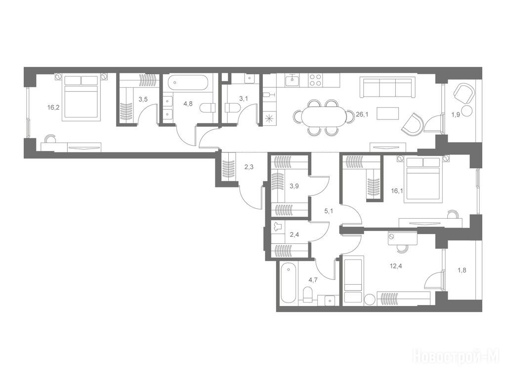 А планировки, так вообще. И два окна в спальне в пол, и кому это мало - окно в ванной комнате.