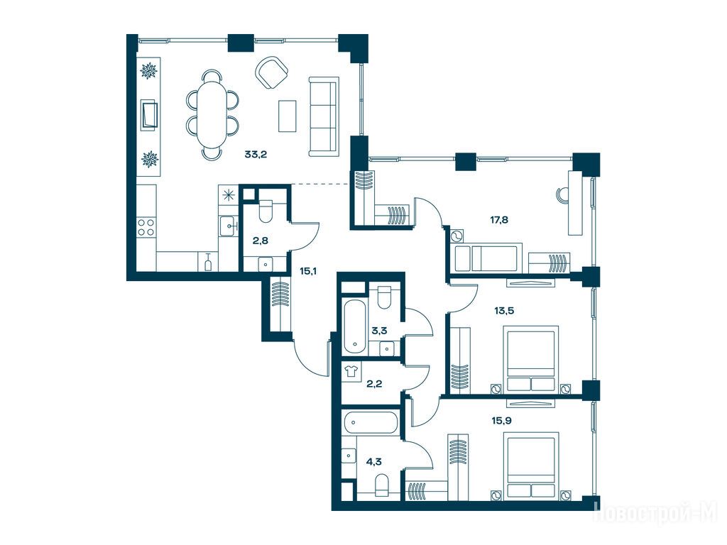 Продается трехкомнатная квартира в новостройке ЖК SOUL (Соул) по адресу Москва, САО, Аэропорт, ул. Часовая, уч. 28/1, корп.5. Общая площадь квартиры - 114.1 кв. м. Тип проекта, по которому построен дом — Монолитно-кирпичный, компания-застройщик — FORMA (Форма), ООО СЗ Часовая. Стоимость квартиры — 93 151 240 руб. Способы оплаты можно уточнить у продавца. Срок сдачи — 4 квартал 2026. Более подробная информация по телефону.